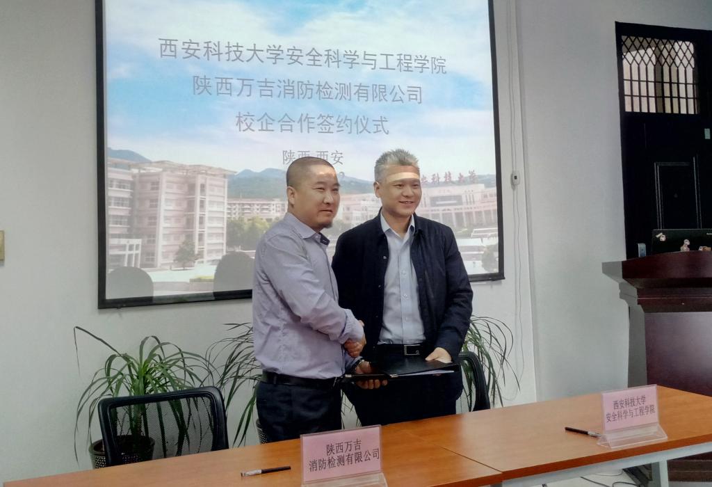 仪式上,邓军对支亮副总经理一行表示热烈欢迎,向其介绍了公司发展、科学研究、校企合作等情况。杜勇对万吉消防企业奖学金在公司继续实施和对公司员工培养的支持表示了感谢,对双方长期深入合作寄予美好期望。签约仪式上,双方就科研合作、员工培养、实践实习、企业人员培训、企业奖学金实施等内容进行了全面商谈,对智慧消防的未来发展趋势进行了交流探讨。邓军与支亮分别代表校企双方签署了校企合作框架协议书。