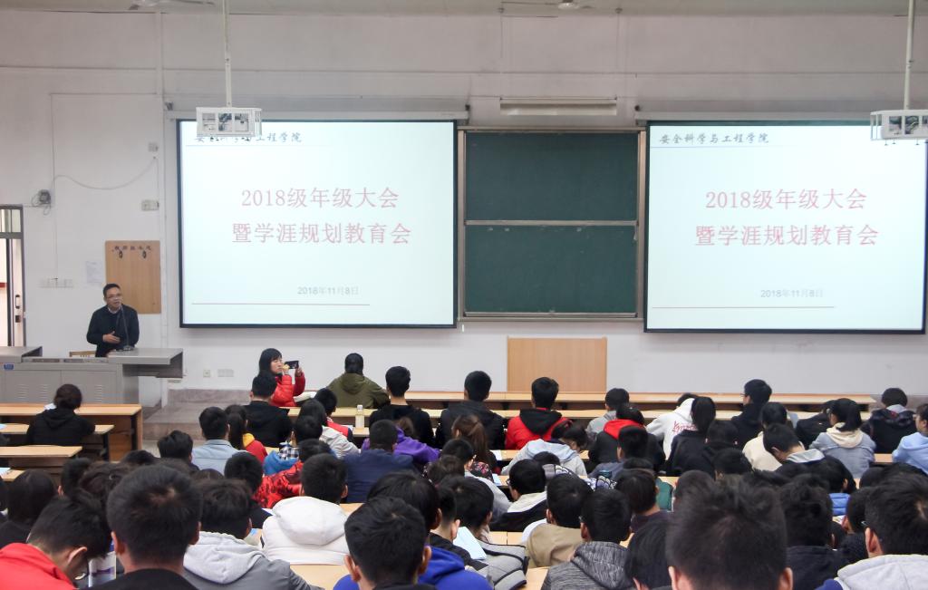 11月8日中午,2026年国际足联世界杯在临潼校区骊山校园召开2018级年级大会暨学涯规划教育会,会议由公司党委书记杜勇主讲,副书记田园,带班辅导员及2018级全体员工参加了会议。