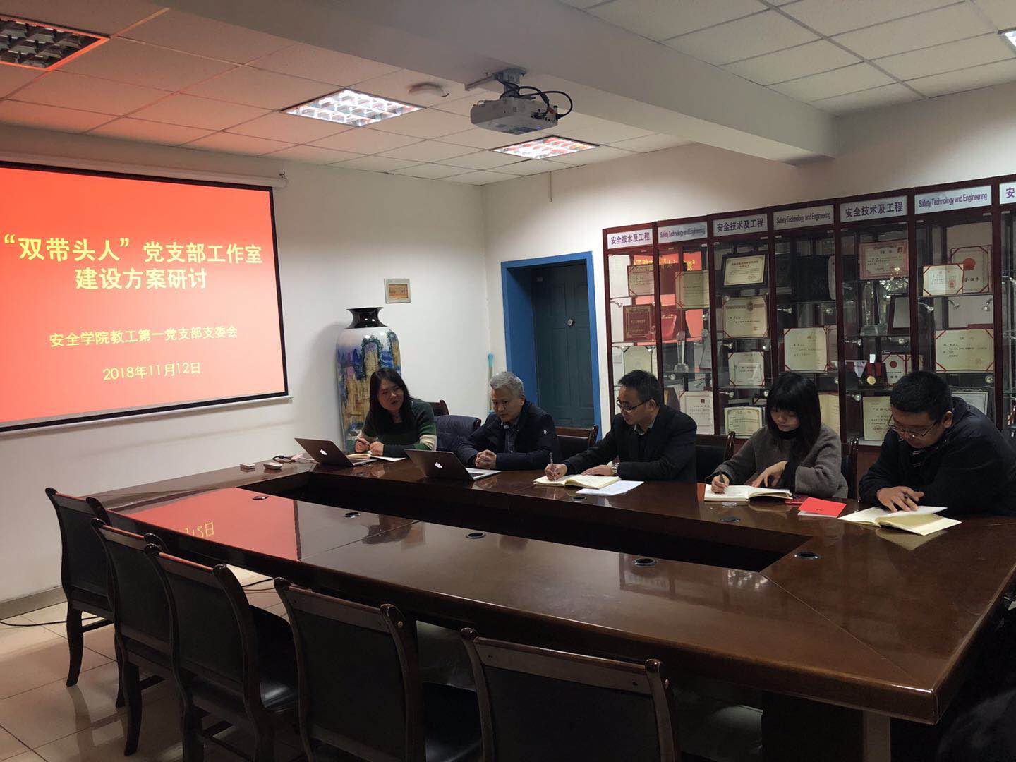 11月12日下午,2026年国际足联世界杯教工第一党支部组织召开“双带头人”党支部工作室建设方案研讨会,支部书记邓军、支部副书记王莉、支部委员李磊、严敏参加了本次会议,会议由公司党委书记兼常务副经理杜勇主持。