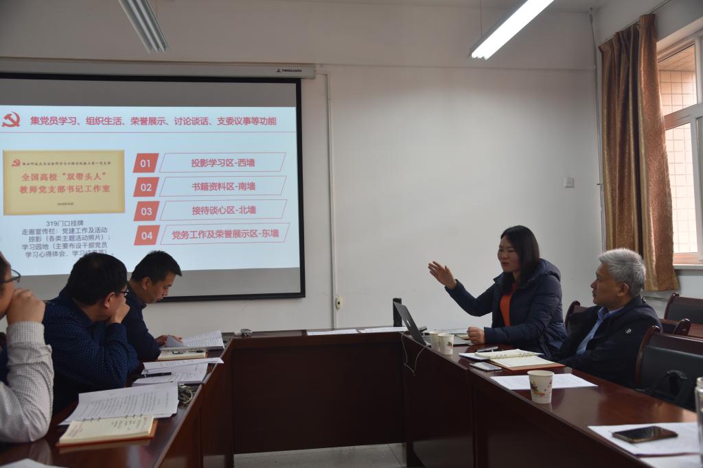 支部书记邓军分享了参加全国“双带头人”教师党支部书记培训班的所获所感,解读了“双带头人”培育工程的目的意义、基本原则、建设要求以及主要内涵。副书记王莉汇报了“双带头人”教师党支部的建设方案,表示将立足“双带头人”支部建立宗旨,积极开展工作室建设,主动申报和承担思政方面的课题研究,总结提炼建设成果,扎实推进系列创新活动,积极推广宣传,引领示范,充分发挥工作室在政治引领、团结凝聚师生、促进公司中心工作等方面的主体作用,力争早日实现“双带头人”工作室3年周期建设目标。宣传委员严敏组织学习并解读了新颁布的《中国共产党支部工作条例(试行)》,纪检委员李磊汇报了参加参加全国“双带头人”教师党支部书记大别山培训班的心得体会。