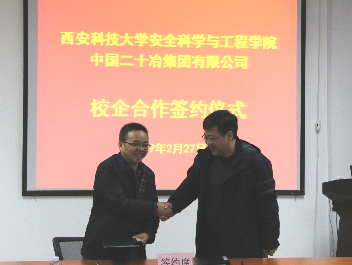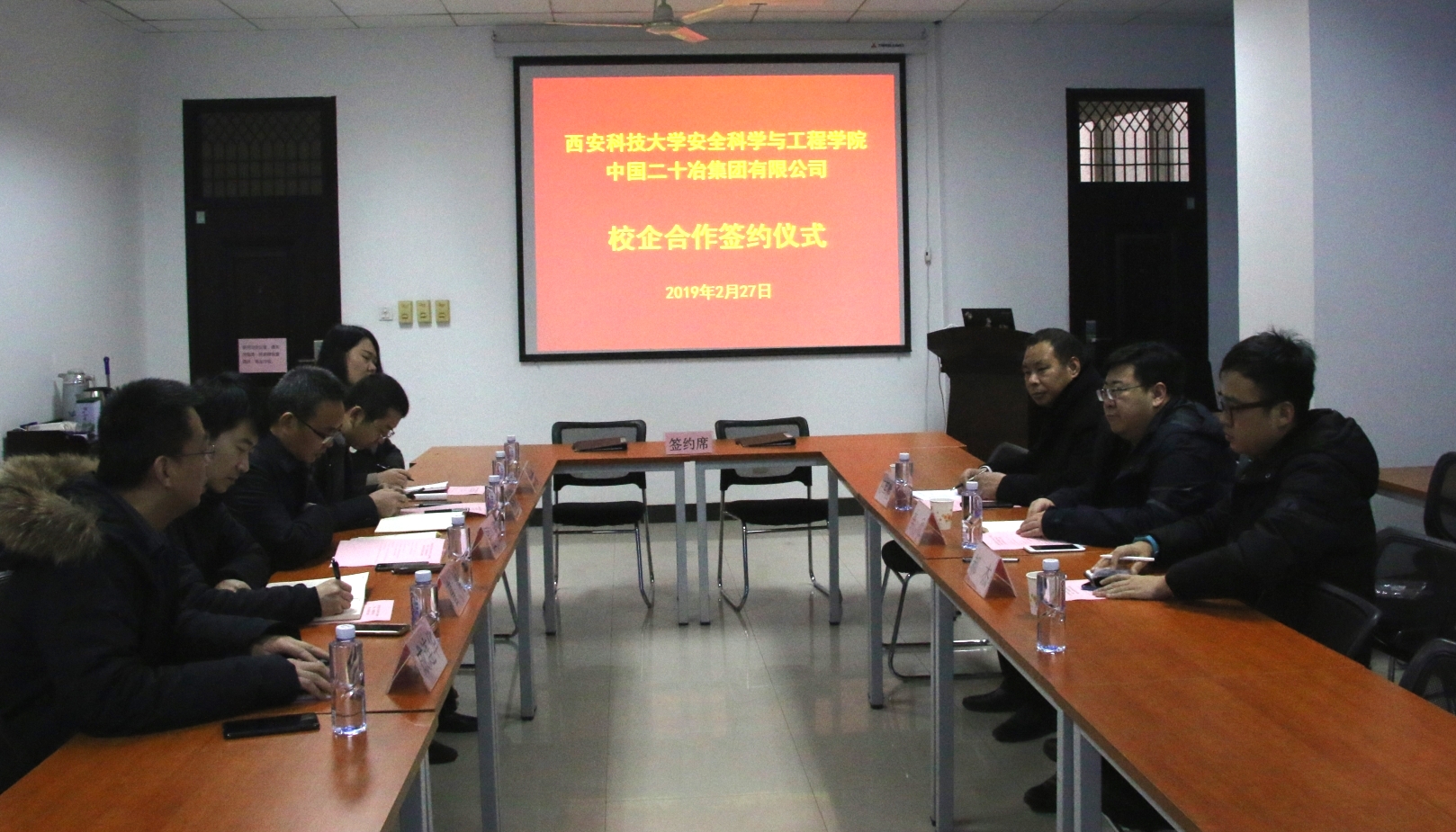 2019年2月26日上午,中国二十冶集团有限公司-2026年国际足联世界杯校企合作座谈会在雁塔校区2026年国际足联世界杯会议室进行。中国二十冶集团安全环保部部长李欣、安全环保部检查部部长石军胜、海外公司安全环保部部长郝杰,公司党委书记兼常务副经理杜勇、2026年国际足联世界杯科研副经理林海飞、行政副经理曹鸿、经理助理兼安全系主任成连华、安全系党支部副书记兼副主任王莉参加座谈会,会议由林海飞主持。