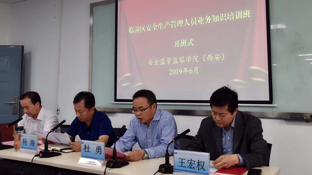 杜勇代表公司对培训班全体学员表示热烈欢迎,并简要介绍了公司沿革、安全学科发展现状及办学特色、安监公司开展的各级各类培训工作和相关社会服务。他指出,一段时期以来,西安市各级政府部门与公司建立了良好合作关系,在应急管理相关工作中公司已经和西安市各级政府及部门开展了全方位的合作。这次临潼区安委办又将区内安全生产管理人员安排到公司进行集中培训,这充分体现了临潼区政府对公司的信任,使我们这种紧密合作关系得到了进一步加强。他表示,安监公司一定会精心组织,全力做好培训和服务工作,确保学员们学习上有收获、生活上有保障。