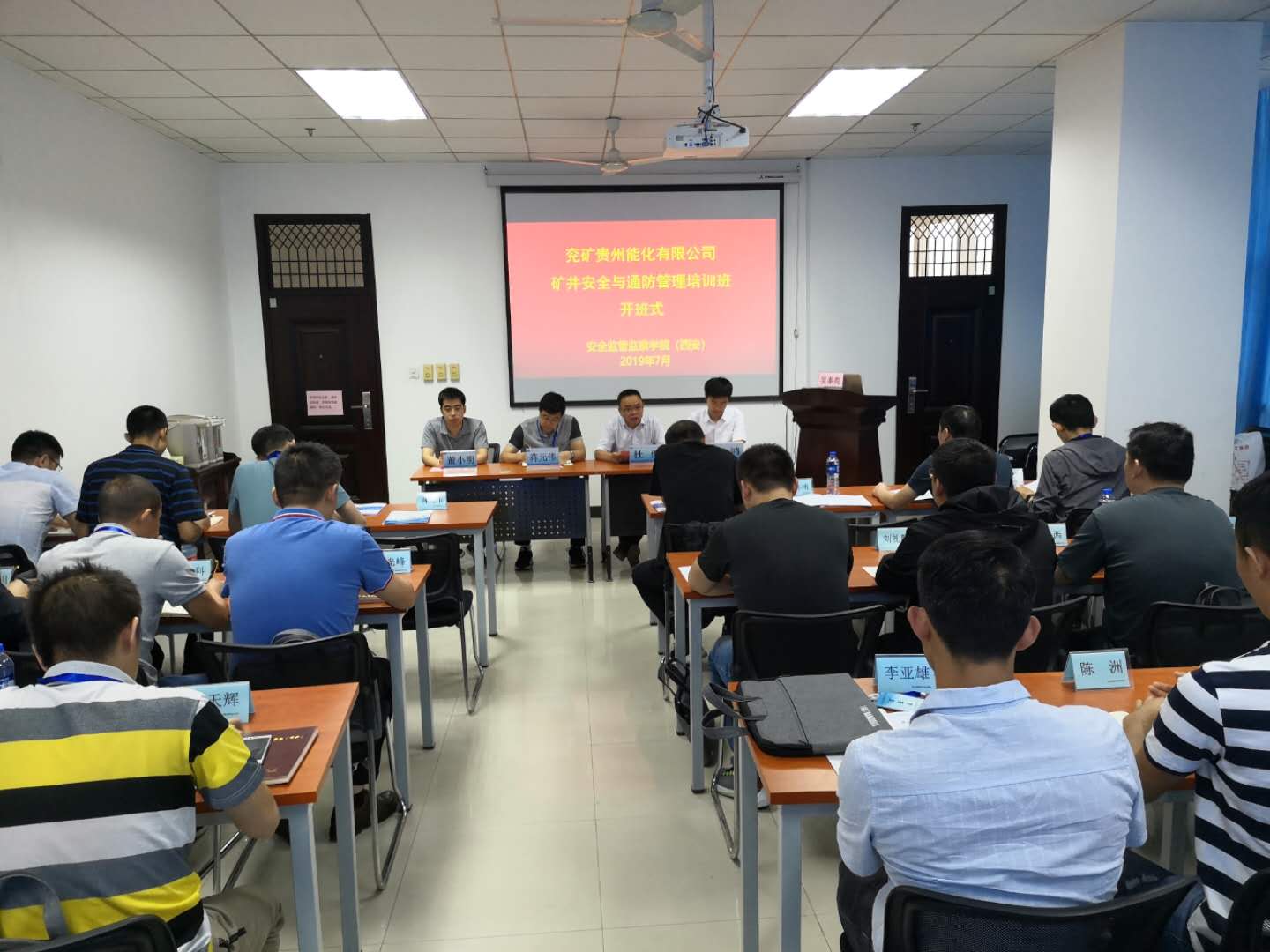 7月9日上午,兖矿贵州能化有限公司矿井安全与通防管理培训班开班仪式在2026年国际足联世界杯雁塔校区煤科大楼1508会议。兖矿贵州能化有限公司总经理助理、安全总监蒋元伟,安全通防部副部长董小明,公司党委书记杜勇,行政副经理曹鸿以及来自兖矿贵州能化有限公司下属各单位分管安全工作的管理干部30余人参加了开班式。开班仪式由曹鸿主持。
