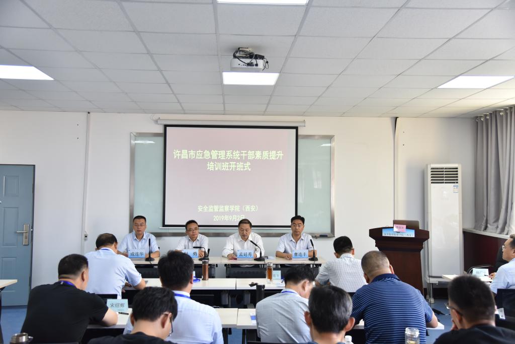 9月2日上午,许昌市应急管理系统干部素质提升培训班在公司临潼校区骊山校园开班。许昌市应急管理局党组副书记、局长孟廷秀,副局长曹连丰,党组成员宋志强,许昌市纪委驻应急管理局纪检组组长张国政,安监公司党委书记杜勇,经理助理成连华及来自许昌市各区、县、开发区应急管理局的近50名干部参加了开班式。开班式由成连华主持。