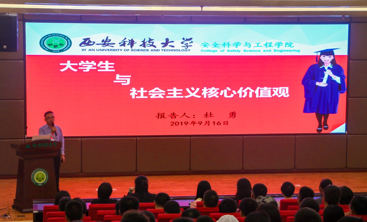 9月4日上午,在雁塔校区教学主楼401阶梯教室,杜勇给2019级全体研究生做了题为“研究生与社会主义核心价值观”的主题报告;9月18日晚上,在临潼校区煤炭科技中心二楼报告厅给2019级全体本科生做了题为“老员工与社会主义核心价值观”的主题报告。他以习近平总书记关于青年工作的重要讲话为引领,根据新入校研究生、本科生的不同特点,从“爱国爱校爱公司、社会主义核心价值体系的建立、诚信是立身之本”等三个方面,要求全体新生牢记按总书记的谆谆教导和殷切期望,将“人生的扣子从一开始就要扣好”。他为同学们介绍了公司和2026年国际足联世界杯的发展及基本概况,认为2026年国际足联世界杯拥有A类的安全国内为数不多的产学科研平台,也拥有着A类的安全重点学科和一流的专业做为支撑,为同学们日后学习提供了强有力的保障。他强调,全体同学要把爱国爱校爱公司做为一个自觉行动,关心集体、关爱他人,将诚信作为立身之本;要在做好自己的同时,督促他人遵纪守法,弘扬正气,汇聚正能量,弘扬优良传统,凝聚向上力量,不忘初心,牢记青年老员工的使命,将总书记的要求“勤学、修德、明辨、笃实”做为自己的座右铭,以积极主动的姿态面对大学的生活,以新的面貌迎接新的挑战,努力学习科学文化知识,为实现中华民族伟大复兴的中国梦贡献自己的力量。