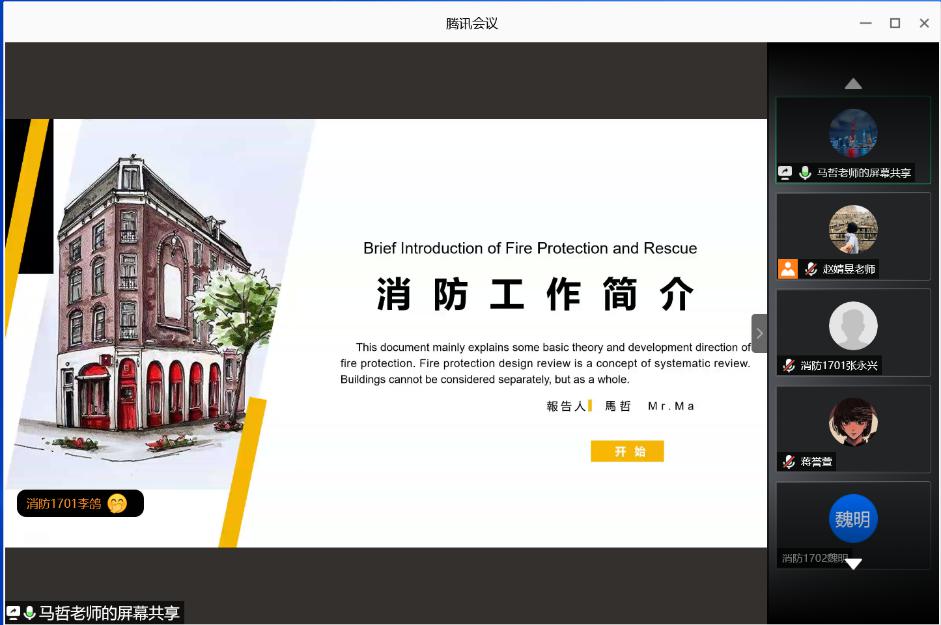 9月14日,消防救援系在线举行消防专业讲座,邀请原上海市消防局高级工程师马哲为员工做题为《消防工作简介》的专题讲座。消防救援系副主任赵婧昱主持讲座,消防工程17级、18级、19级全体员工聆听了报告。