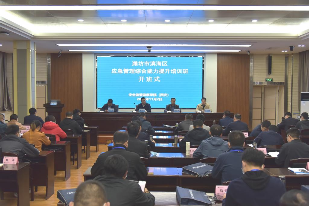 11月2日上午,潍坊市“滨海区应急管理综合能力提升培训班”在公司雁塔校区图书馆二楼报告厅开班,来自潍坊滨海经济技术开发区的56名干部参加本期培训。潍坊市滨海区党工委委员、管委会副主任李铁柱,潍坊市滨海区应急管理局党支部书记、局长王金,安全监管监察公司(西安)副经理成连华出席了开班式,开班式由尚云鹏主持。
