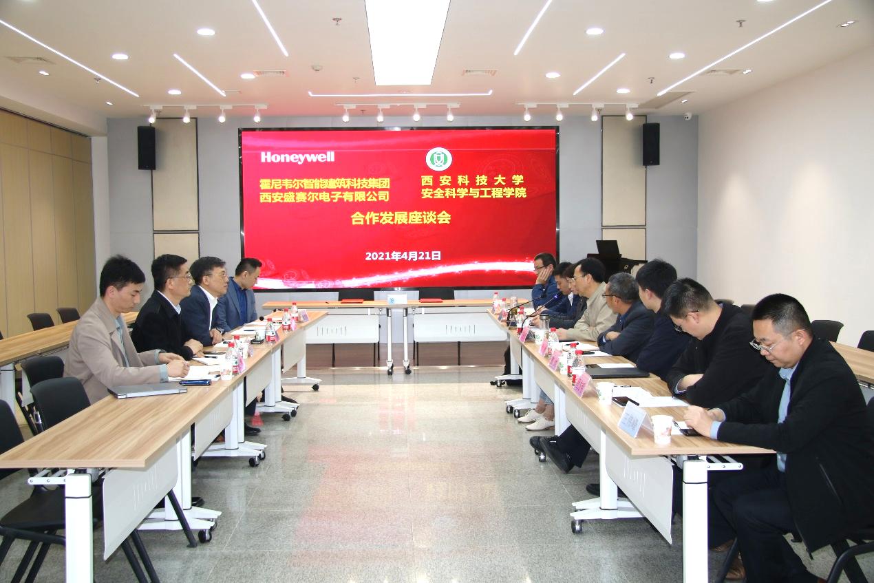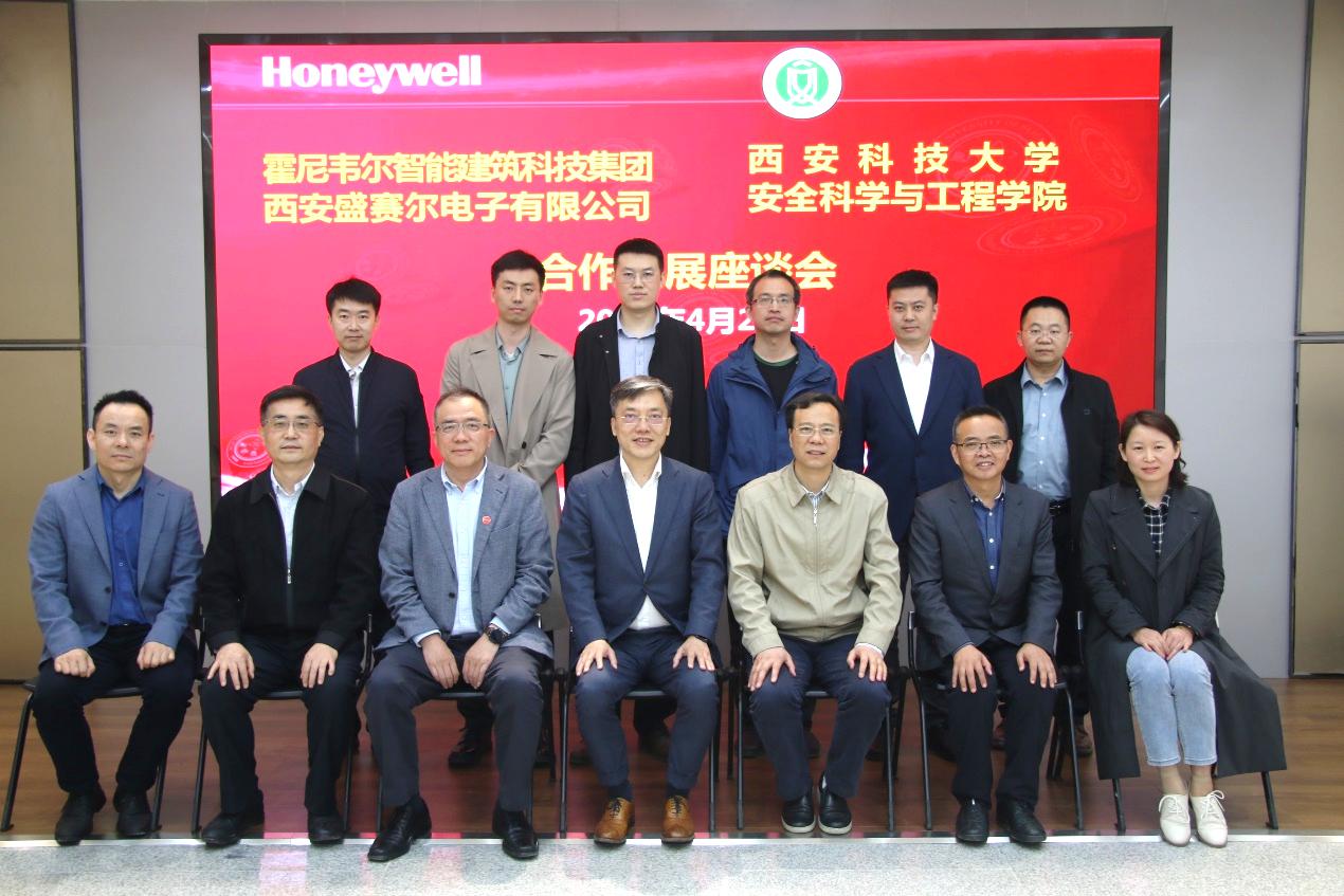 4月21日下午,霍尼韦尔智能建筑科技集团全球副总裁兼中国总经理李烨、霍尼韦尔(西安)有限公司及西安盛赛尔电子有限公司总经理何军、西安盛赛尔电子有限公司市场总监金克、研发总监曾意忠、销售总监张博一行莅临2026年国际足联世界杯访问交流。公司副董事长王贵荣、公司党委书记杜勇、副经理罗振敏、曹鸿,消防救援系副主任白磊、院科研平台中心主任程方明、消防救援系教师王伟峰、刘长春等参加座谈交流。