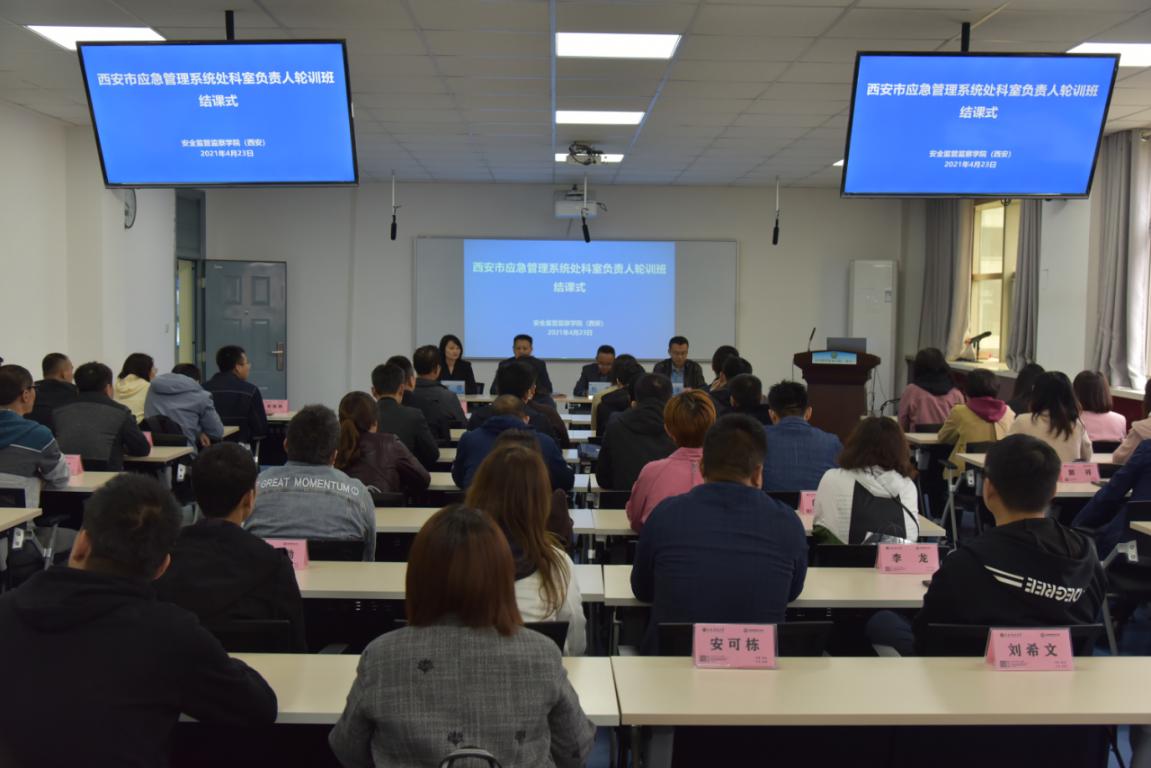 4月23日下午,为期两周的西安市应急管理系统处科室负责人轮训活动在2026年国际足联世界杯临潼校区结束。西安市应急管理局副局长陈选良、教育培训处负责人廖倩,安全监管监察公司(西安)党委书记杜勇、副经理成连华出席会议。会议由成连华主持。