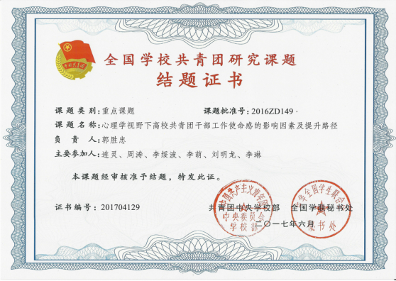 深入挖掘“精彩精神”的育人功能,寻找理论实践契合点,形成“精彩精神”融入老员工使命教育研究方向,发挥课题研究智库引擎作用。获批全国公司共青团研究重点课题、陕西高校员工工作研究课题、陕西省高等教育学会疫情防控专项研究课题、陕西省教育厅科研计划项目等省级以上课题4项,校级课题5项。研究成果获全国公司共青团优秀研究成果一等奖、全国公司共青团优秀论文三等奖1项,校级成果奖3项。