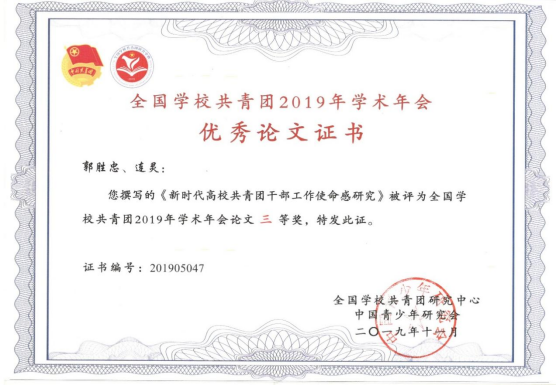 全国公司共青团优秀论文三等奖