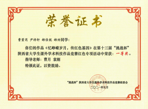 “挑战杯”红色专项赛陕西省一等奖