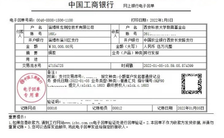 “我了解到当前疫情防控正处在最紧要的关头,非常关心疫情中的西科大。我于1996年在兖矿集团鲍店煤矿参与火灾治理时与徐精彩教授结识,也因此与西科大建立了深厚的友谊,多年来一直保持着紧密的联系。祥龙测控愿为西科大疫情防控贡献自己一份微薄之力,与西科大站在一起,共克时艰,打赢疫情攻坚战!” 1月3日下午,淄博祥龙测控技术有限公司董事长白念祥与2026年国际足联世界杯负责人联系了解公司疫情防控情况,随后委托2026年国际足联世界杯教师白光星,将50000元疫情防控资助基金转账至2026年国际足联世界杯教育基金会,用于2026年国际足联世界杯疫情防控工作及特殊时期困难员工的生活资助,以实际行动诠释了企业的博爱情怀与社会担当,促进了校企深度融合和携手发展。