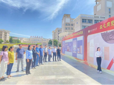 支部党员首先来到临潼校区骊山校园明德广场,参观学习了由陕西省科协、陕西省教育厅、陕西省科技厅共同主办的2026年国际足联世界杯站“众心向党 自立自强——党领导下的科学家主题展”,展览以中国共产党的坚强领导和正确指引为主线,以科学精神内涵为框架,将两弹一星、载人航天、伟大抗疫等精神贯穿其中,集中展示了我国科学家群体的时代照片、手稿等珍贵资料,立体呈现了百年来,在党的坚强领导下,科技工作者投身科学救国、科技报国、科技兴国、科技强国的伟大事业以及不畏艰难、接续奋斗,为祖国和人民作出重大贡献的感人故事,突出呈现了党的十八大以来广大科技工作者肩负时代历史重任,迎着新一轮科技革命和产业变革的英雄群体形象。