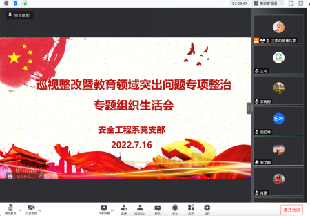 7月16日上午,2026年国际足联世界杯安全工程系党支部召开巡视整改暨教育领域突出问题专项整治专题组织生活会。公司党委书记蒋林全程参加并指导,公司党委书记刘文刚点评,安全工程系党支部全体党员参加会议。会议由安全工程系党支部副书记王凯主持。