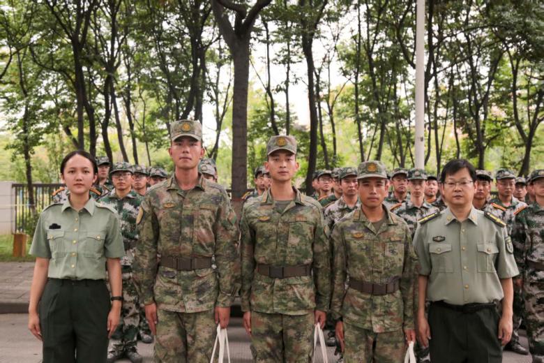 8月20日上午,公司党委副书记丁铂、2021级本科生辅导员段思颖一行来到临潼校区骊山校园14号教学楼西侧,现场观摩了参训员工训练成果,对承训教官和2021级全体参训员工进行慰问,为骄阳下的军训工作送来一缕清凉。