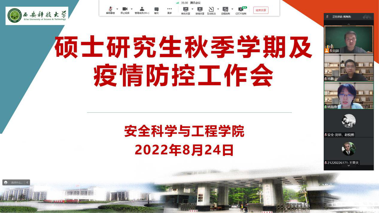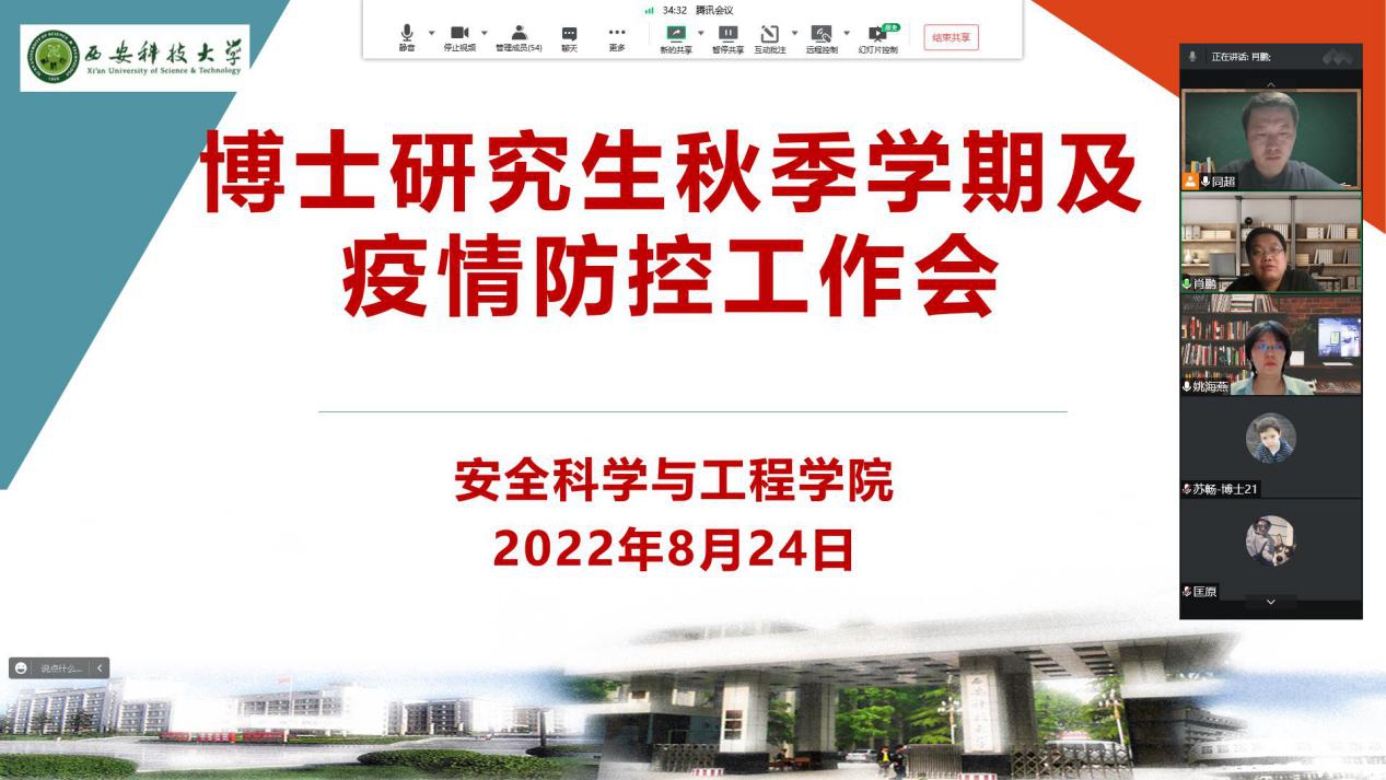 肖鹏在总结讲话时强调,全体研究生要提高政治站位,正确认识目前疫情防控形势和各项应对措施,自觉落实各项防控措施,坚决防止松懈思想和麻痹思维,树牢底线思维,重视实验室、工作室、宿舍防疫消杀,严格按照规程进行实验操作和实验室安全管理,做好日常报备,注重个人防护。要坚定信心、克服困难,保期、保质完成既定科研计划和目标,珍惜宝贵时间科学制定和适当调整学位论文撰写和做好职业生涯规划。要保持沟通,及时汇报,加强与公司、导师、辅导员的沟通,及时反映问题和困难,及时报告突发状况。