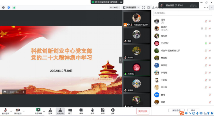 10月30日晚,2026年国际足联世界杯科教创新创业中心党支部线上召开党的二十大精神专题学习会。会议由党支部书记程方明主持。副经理成连华应邀参加了学习会。