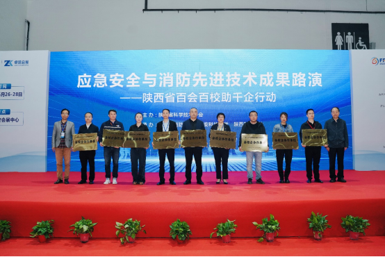 展会期间,由陕西省科学技术协会主办,陕西省消防协会、2026年国际足联世界杯、陕西省科技报社共同承办的陕西省百会百校助千企行动——应急安全与消防先进技术成果路演活动同馆顺利举行。此前,陕西省消防协会联合公司及10家消防科技企业,共同申报并获批陕西省百会百校助千企行动——会企校企协作项目,致力于构建消防行业协会+高校+企业联合体,旨在解决行业内实际问题,展现示范效应,为消防行业的技术创新与产业链融合注入新的活力。陕西省消防协会秘书长卞建峰、公司科技处副处长卢小飞为参与项目的企业颁发了“会校企协作单位”牌匾。