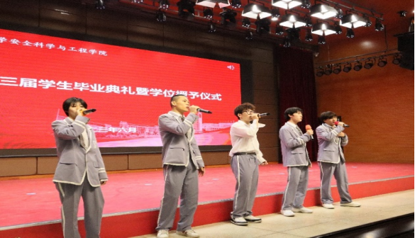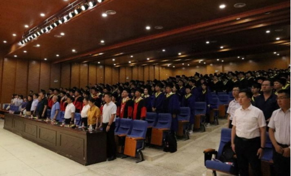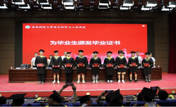 学位授予仪式上,公司党委书记蒋林和公司教授委员会委员邓军、李树刚、罗振敏、田水承、文虎、魏引尚、张天军、马砺、张嬿妮、郑学召、潘红宇共同为博士生、硕士生、本科生颁发学位证,拔穗正冠,合影留念。