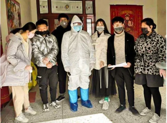 工作内容:协助村委会在路口设立的疫情防控点站岗,对进出车辆及人口进行登记和体温测量,挨家挨户的分发口罩及消毒液。