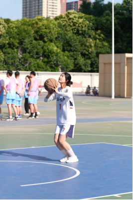 在男生4人制半场赛中场休息时,各球队的女生队员进行投篮及运球比赛。巾帼不让须眉,瘦弱的女生屡屡进球,将赛场气氛推上高峰,也为同队的男球员鼓足勇气和斗气!