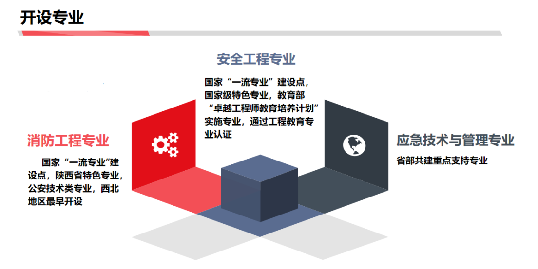 公司设有安全工程(国家一流)、消防工程(国家一流)、应急技术与管理3个本科专业,拥有安全科学与工程一级学科博(硕)士学位授权点和资源与环境类安全工程领域博(硕)士专业学位授权点、博士后科研流动站。在读本科生1300余人,硕、博士900余人。